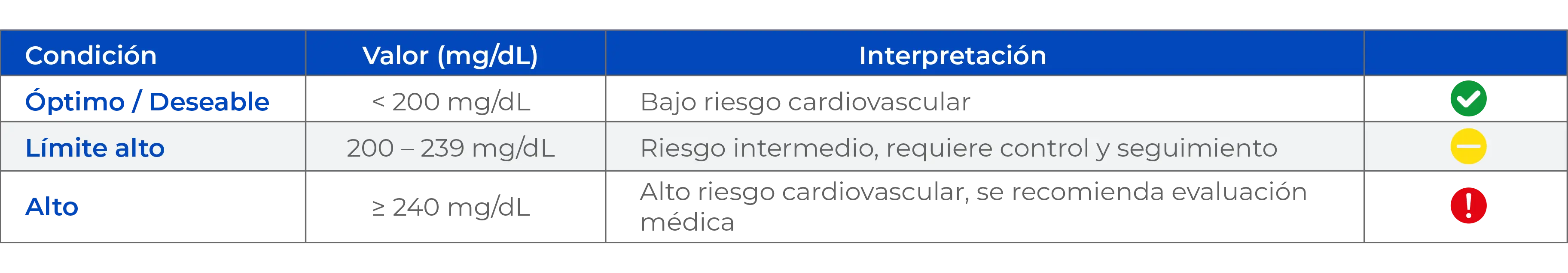 - Colesterol total: Soporte en la gestión de la hipercolesterolemia.