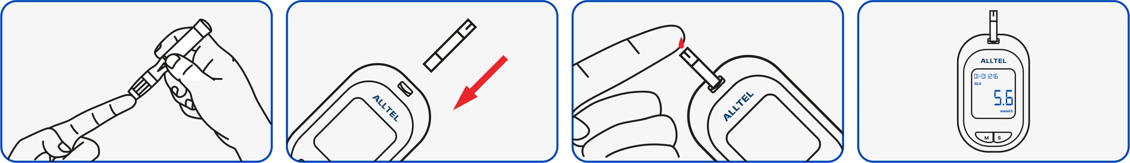 ALLTEL usa el método de glucosa deshidrogenasa (GHD) método de la glucosa deshidrogenada es más estable, recomendado para la detección a largo plazo.